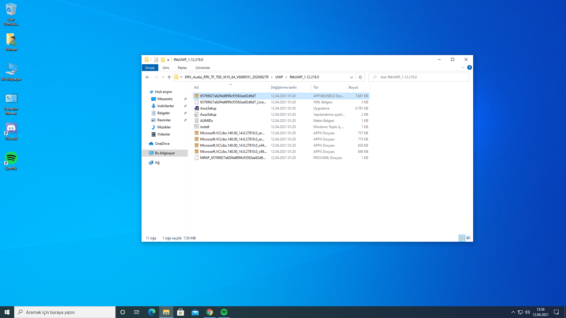 indirdiğiniz klasör duruyor ise içerisinde uwp diye bir klasör olacak oraya giripTUF B450M PLUS GAMING yazıyor sanırım yok![]()