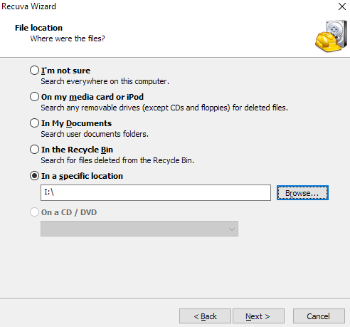 program hangi klasörün araştırılacağını soruyor. Hangi klasörün (ya da diskin) araştırılacağına karar vermek için aşağıdaki açıklamalara bakmanızı öneririm. Ben SD kartımın takılı olduğu ı diskini seçtim dolayısı ile program tüm SD kartımı araştıracaktır. Dosya yolunu seçtikten sonra "Next" butonuna basıyoruz.