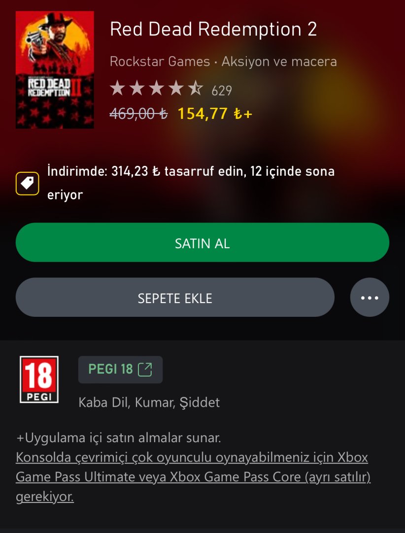 Oyun dünyasının gözdesi olan RDR 2 Microsoft Store da ay takvimi yeni yıl indirimi ile 154.77TL'ye düştü. Almamış olan arkadaşlara öneririm.