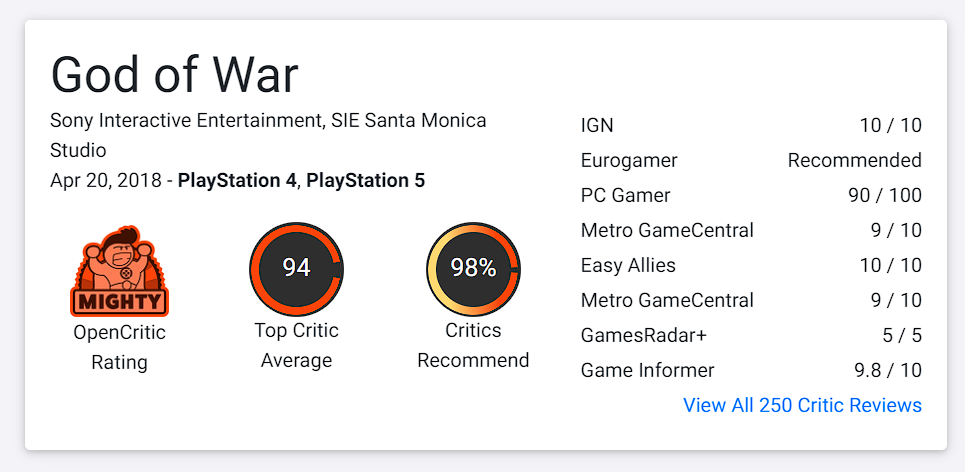 Evet sonuç açık, RDR 2 tüm eleştiri platformlarında God of War'dan yüksek puanlandı. God of War 23 milyon, RDR 2 46 milyon satış yaptı. Yani God of War ancak RDR 2'nin yarısı ediyor