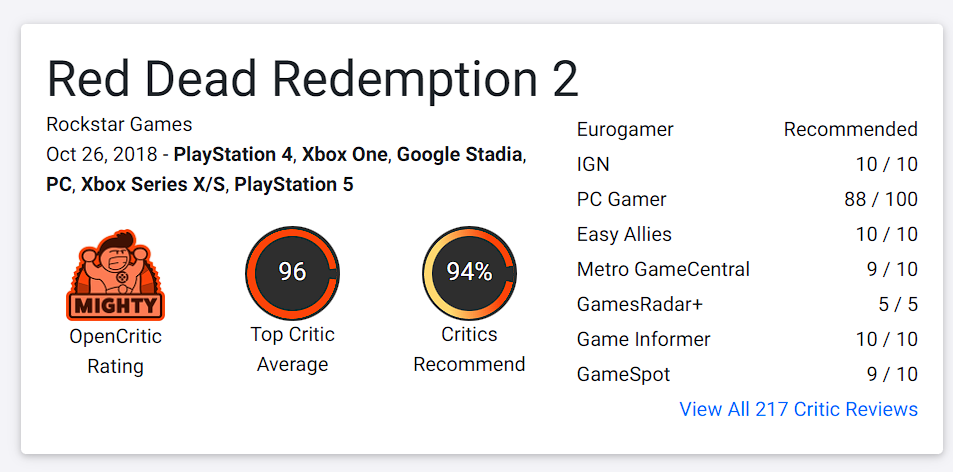 Eklediğim ekran görüntüleri ortada. Bu oyun kötü bir oyun olsa 46 milyon insan para verip alır mı? Bütün oyun eleştirme platformlarından tam puan alır mı? Puan ortalaması 97 olur mu? Nereyse tüm oyun basını bu oyuna tam puan verdi, sen bu işi oyun basınından daha mı iyi biliyorsun?