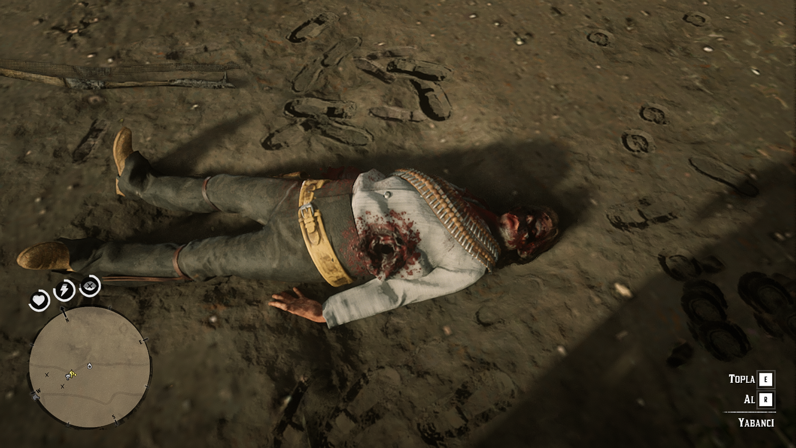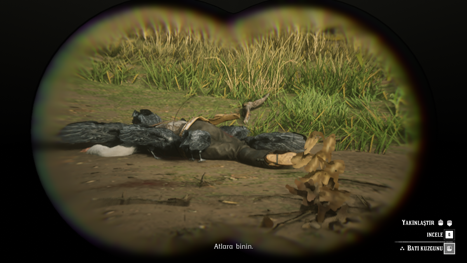 Bir yan görev gereği çatışmam gerekti ve bir kişiyi Tomahawk'la, diğer iki kişiyide tabanca ile öldürdüm. Alandan tam ayrılıyordum ki kuzgun sürüsünü az önce çatıştığım adamın cesedine geldiğini gördüm. Biraz uzaktan inceledim ve yanına cesedin yanına gidip kuzgunları kaçırdım.