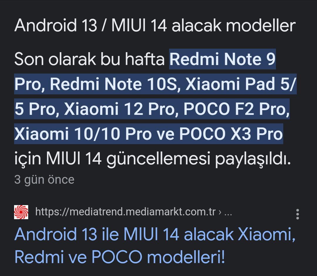 Herkese merhaba, cihazım başlıkta belirttiğim modeldir. Android 13 ve MIUI 14 gelmiş diye duydum ancak güncelleme denetlememe rağmen son sürümün bu olduğu belirtiliyor. Ne zaman geleceğini bilen varsa aydınlatsın. Teşekkürler.