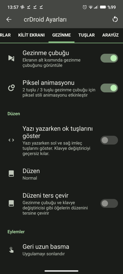 crDroid, LineageOS ROM'un makyajlanmış halidir. LineageOS ROM'a göre fazla özellik barındırmakla beraber ek özellikler ve daha performmanslı bir şekilde önümüze geliyor.