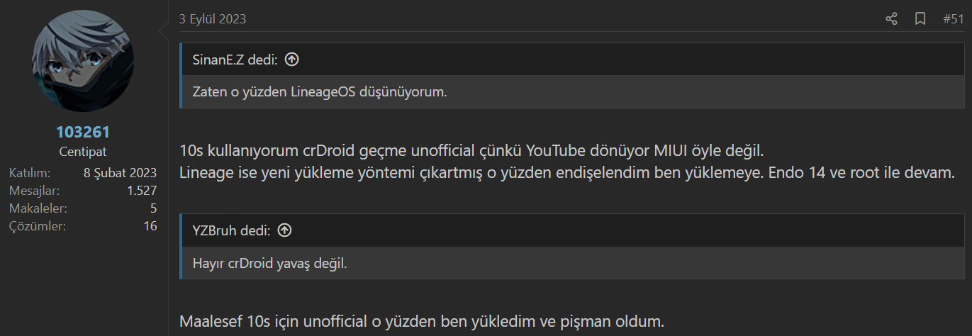 Ben birkaç özelleştirme yaptığım için (GApps üzerinde) crDroid 9.9 sürümünü kullanıyorum.