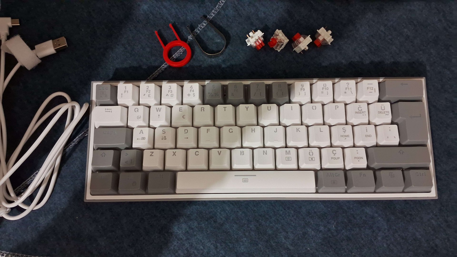 Kutu içeriğinde Type-C'den USB'ye dönen kablo, 4 adet yedek Switch, tuş ve Switch çıkarma aparatı, garanti belgesi, kullanım kılavuzu ve stickerlar çıkıyor.