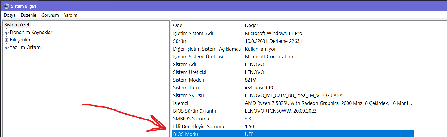 UEFI çevireceğim ama komut istemine girerken admin parolası istiyor.