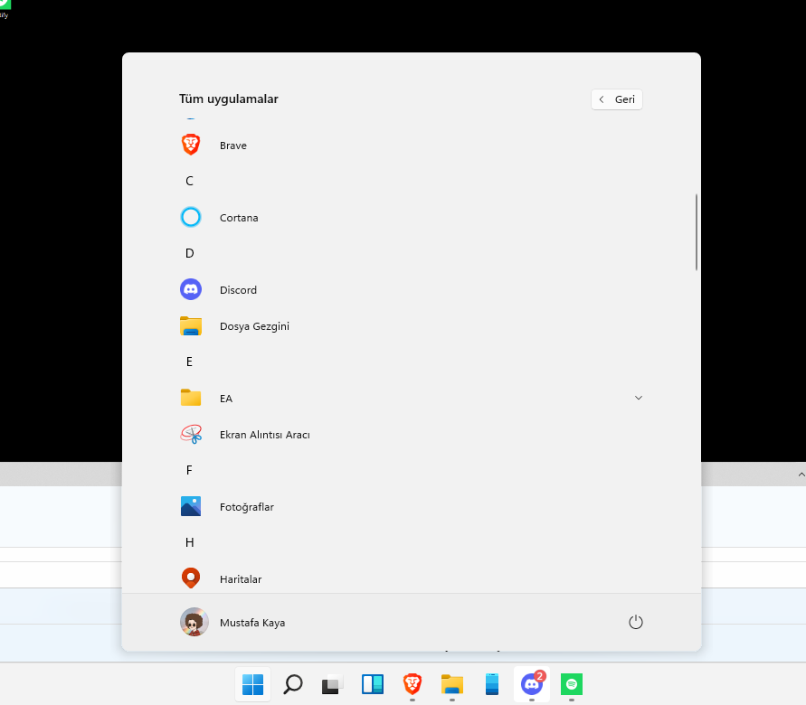 Başlat Menüsü bildiğiniz gibi. Menüde bulunan uygulamalar özelleştirilebiliyor.