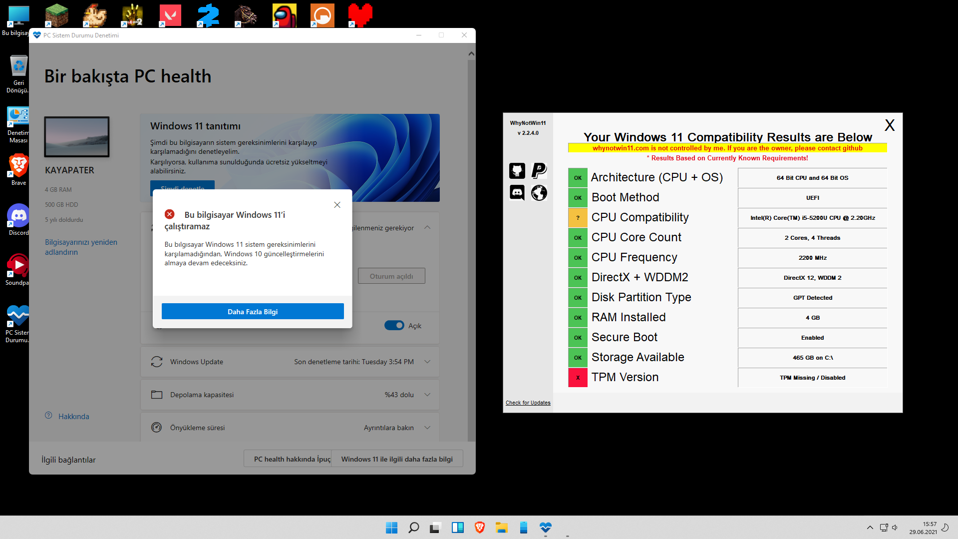Son olarak Microsoft'a nispet olsun diye herkesin yaptığı şeyi yapayım. Microsoft'a göre Windows 11 kullanamam. 😎