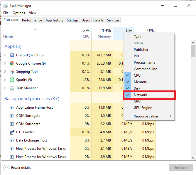 Teşekkürler. Görev yöneticisinde internet kullanımı gözükmüyor peki bunu nasıl düzeltebilirim.