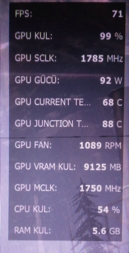 ayarlar en sondayken oyun geneli VRAM 5-6 GB arasında giderken telsiz hatlarını kırdığımız ilk yan görevdeki açık alanda VRAM kullanımı 8-9 GB'lara fırlıyor.