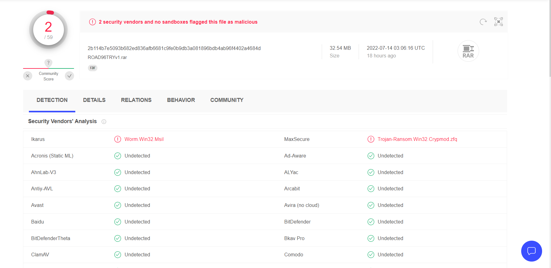 Dosyanın Hybrid Analysis raporunu alıp konu altından paylaşın.