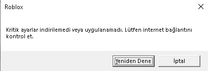 Roblox'a girmeyi denediğimde "kritik ayarlar uygulanamadı veya indirilemedi. Please internet bağlantınızı kontrol ediniz" diye bir yazı ile karşılaşıyorum (siteye girebiliyorum, internetimde herhangi bir sıkıntı yok.