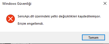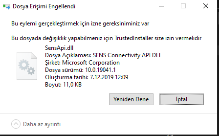 Selam, iki dosya da da SensApi.Dll var, ama sysWOW64'deki dosyaları değiştiremediğim için sadece system32'nin SensApi.Dll'ini değiştirdim garantiye almak için, işe yaramadı.