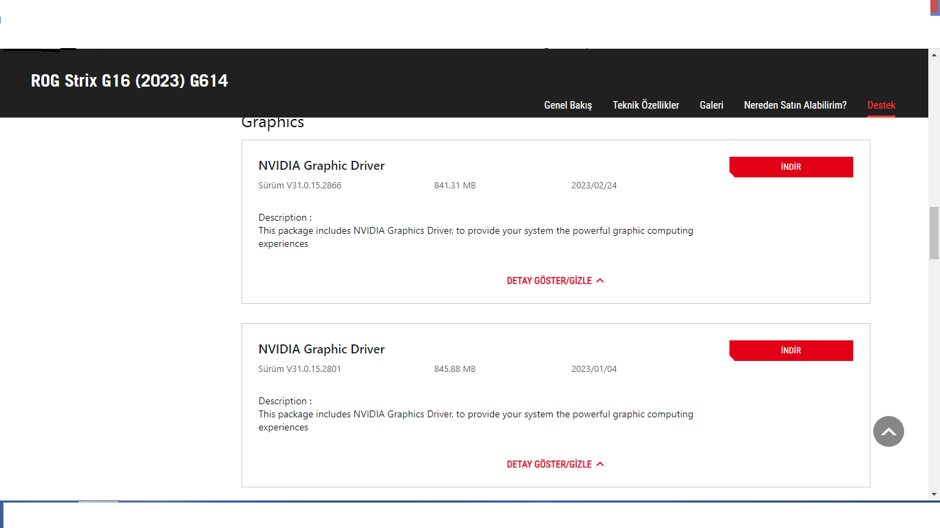 Cihazım yeni ASUS ROG STRIX G16 2023.