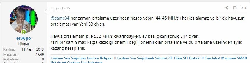 Havuz ortalamam bile 552 MH/s cıvarındayken, ay başı çıkan sonuç 547 civarı.