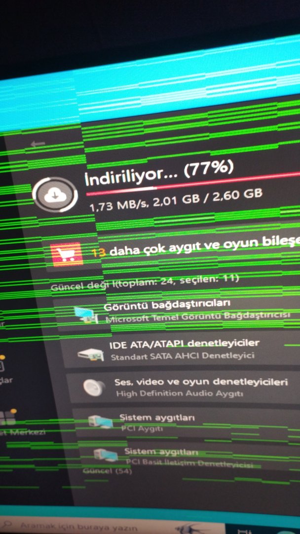Merhaba arkadaşlar RTX 3050 ekran kartına sahip bir sistemim var. PC yeni sipariş edildi. Geleli 2 gün oldu. 2 gündür uğraşıyorum güncellemediğim driver kalmadı. Driver güncelleyince kendini kapatıyor ve başa sarıyor. Güncel olmayan haline ekranda sürekli yeşil çizgiler var ne yapmam lazım yardımcı olur musunuz?