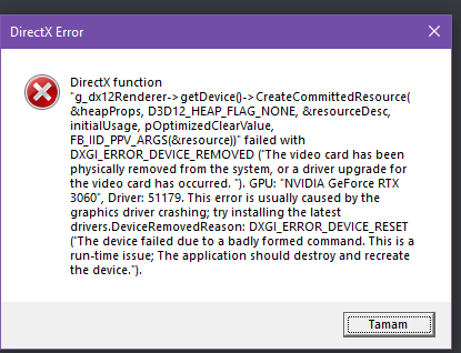 Herkese merhaba, tekrardan bir ekran kartı hatasıyla daha karşı karşıyayım yardımcı olur musunuz lütfen.