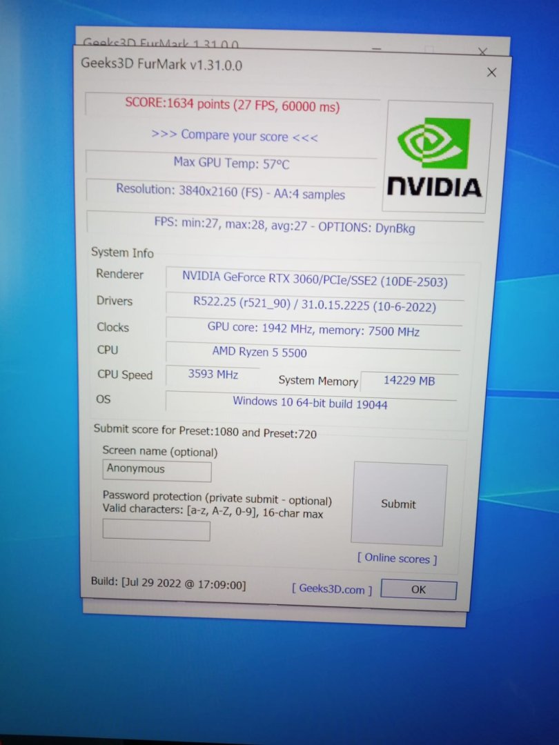 RTX 3060 FurMark sıcaklık değerleri nasıl?