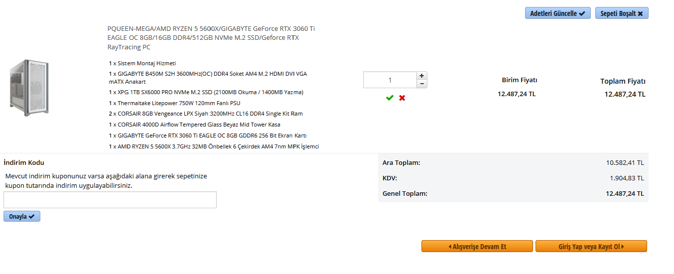 Kardeşim selam biraz piyasa araştırması yaptım. Dün sana en son attığım sistemin fiyatı çok iyi. Stok sorunlarının düzelmesine daha en az 1- 1.5 yıl olduğunu varsayarsak çok büyük bir fırsat var elinde. Bence sen sıvı soğutma eklemeden al, çünkü R5 5600X ile gelen stok soğutucu gerçekten kaliteli. Zaten herhangi bir darboğaz olmayacağı için overclock yapmana gerek kalmayacaktır. İleride istersen kendine NZXT, ROG gibi kaliteli markalı sıvı soğutucular alabilirsin. Eğer yok sıvı soğutma şart dersen kendine farklı bir sıvı soğutma alıp montajlamanı tavsiye ederim. Saygılar. (ekte sana tavsiye ettiğim sistem donanımlarını oluşturdum)
