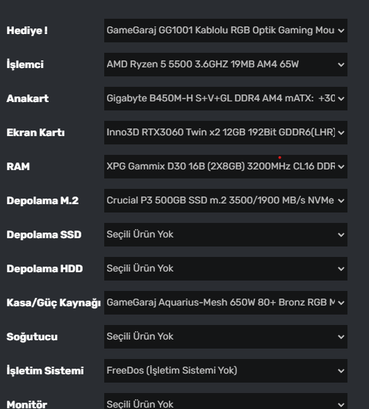 Bu sistemin hazır hali varmı varsa atarmısın3060 tercih edin yalnız o sistem alınmaz fotoğraftaki şekilde bu daha iyi olur. Dediğin oyunlar için 3060 gayet yeterli zaten.
