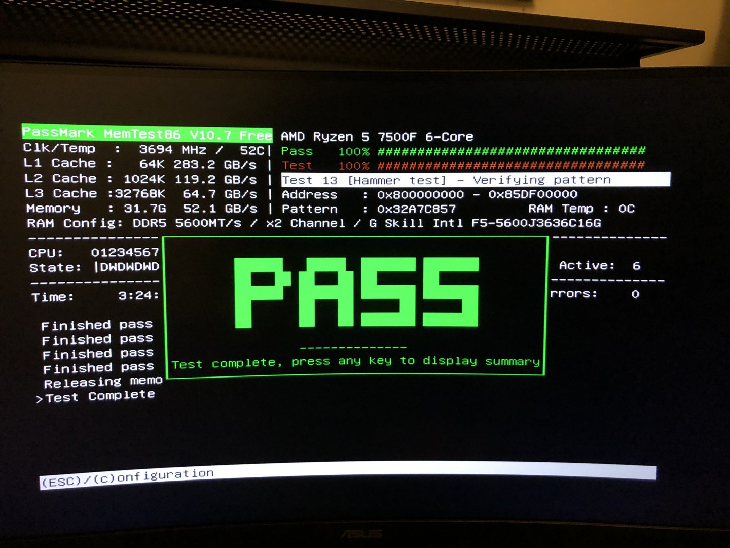 -Memtest ile test ettim RAM'larda sıkıntı yok.