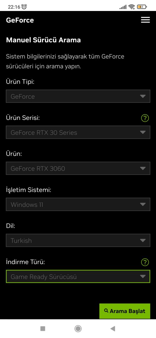 Ve yeni Windows'u indirdikten sonra,Nvidia'nın resmi sitesinden şu driver'ı indirin:
