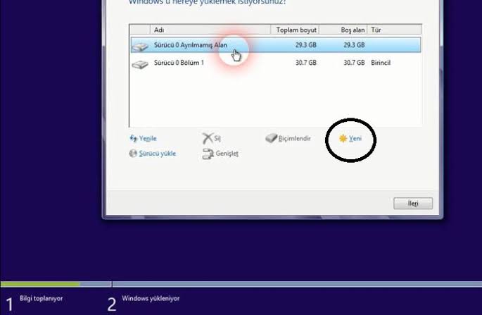 Sildikleriniz tek parça haline gelecek, ayrılmamış alan yazar onu tıklayıp ileri diyeceksiniz, kurulum başlar.