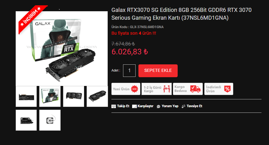 Kartın fiyatı gerçekten iyi bu arada, umarım Teknobiyotik geçen seferki gibi yanlış fiyat girmemiştir.