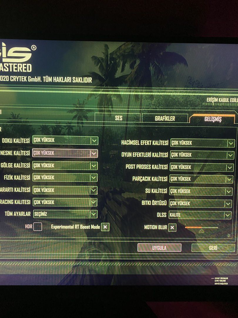 RTX 3070 Crysis düşük FPS veriyor