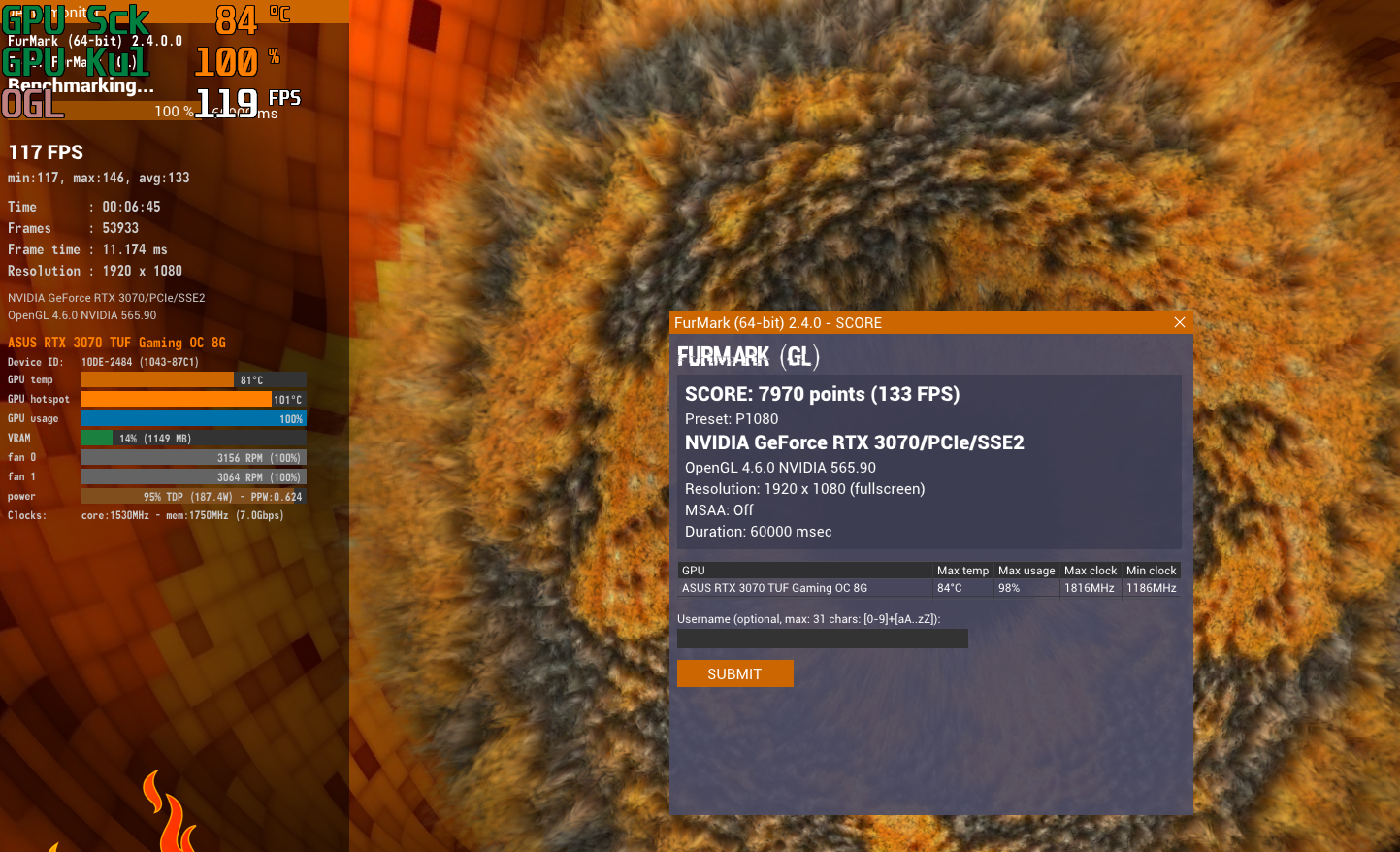 Yeni 2. el 3070 aldım furmak değerlerini yazıyorum.
