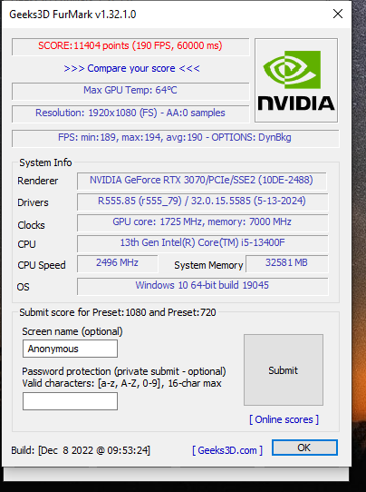 RTX 3070 FurMark sonucu nasıl?