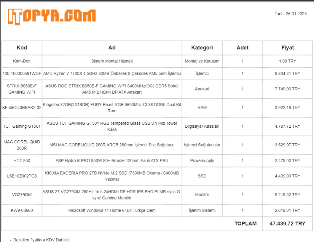 Gerekirse fiyatta şimdilikmin düşüş yapacağım orj. Windows ile SSD var onları çıkarınca 7 k düşüyor sistemin fiyatı bende 1TB var onunla idare ederim bir süre ama diğerlerini mecbur alacağım.