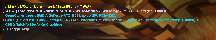 Geçtiğimiz günlerde yeni bir laptop aldım ekran kartı RTX 4050 ve ekran kartının sağlıklı olduğundan emin olmak için kısa bir FurMark testi yaptım.