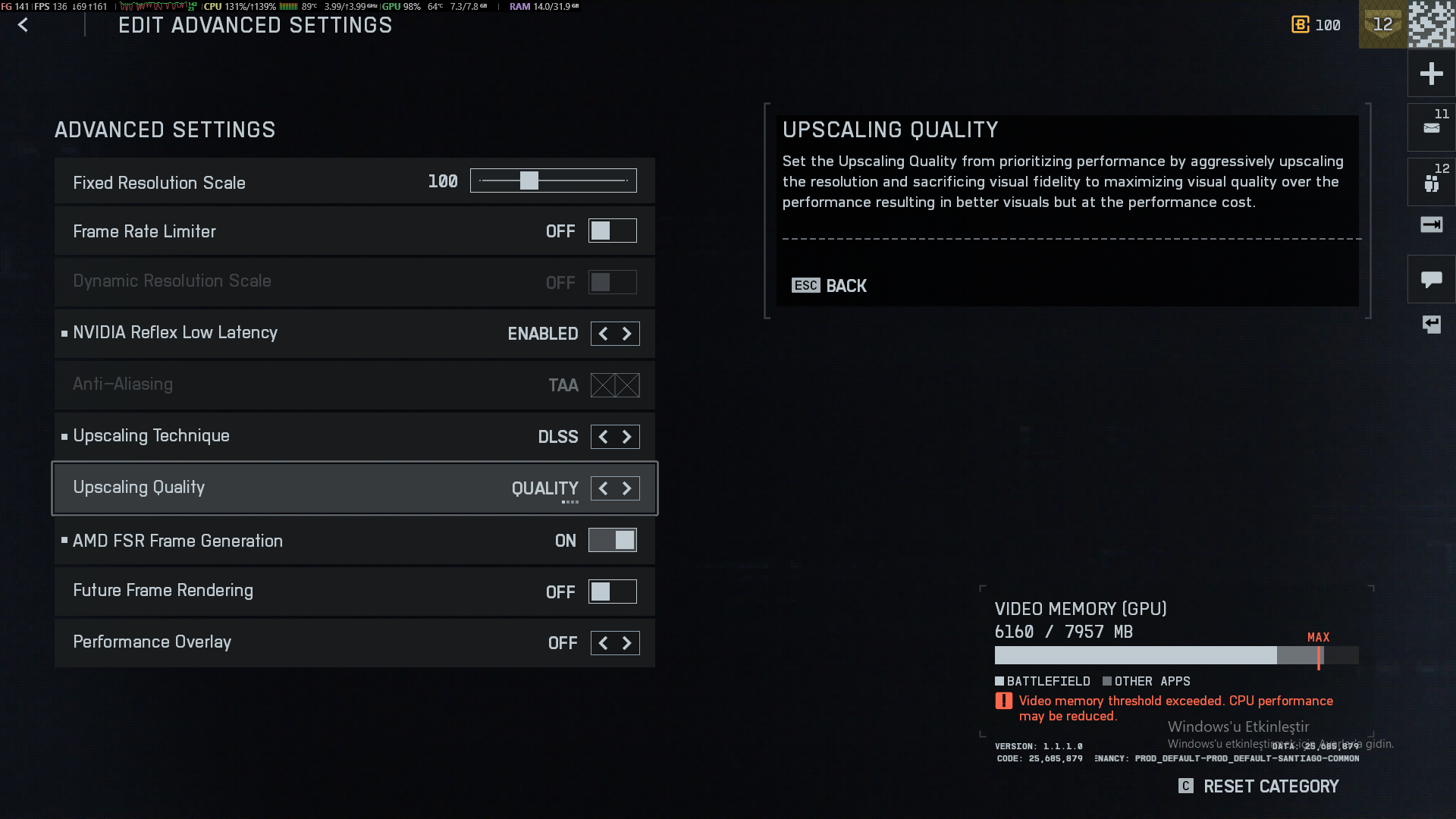 AMD FSR Frame Generation ekstra olarak bulunması normal çünkü AMD tüm kartlara ve sistemlere sunuyor bunu ama DLSS FG olmaması tabiki normal değil.RTX 4060 ekran kartı ve Battlefield 6 oyununda AMD FSR Frame Generation olarak gözüküyor NVIDIA frame genaration olarak gözükmesi lazım değil mi?