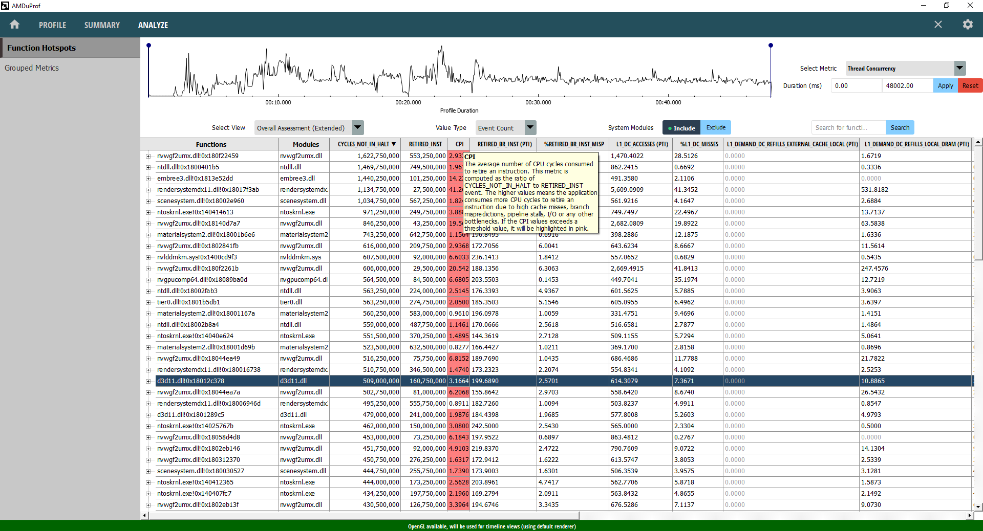 Buradaki yüksek CPI değerleri bu işlemcinin bu oyunu yüksek FPS değerlerinde çalıştırmaya yetmediğini gösteriyor. Yani darboğaz sorunu var, bu tabi oyunun kendisi ile de alakalı CS2 çok kötü bir optimizasyona sahip, herkes bundan bahsediyor zaten, mesela oyundaki FPS değerlerinin oyun sürecinde 100+ FPS oynaması oyunun yazılım kalitesi bakımından berbat bir durumda olduğunun göstergesi.