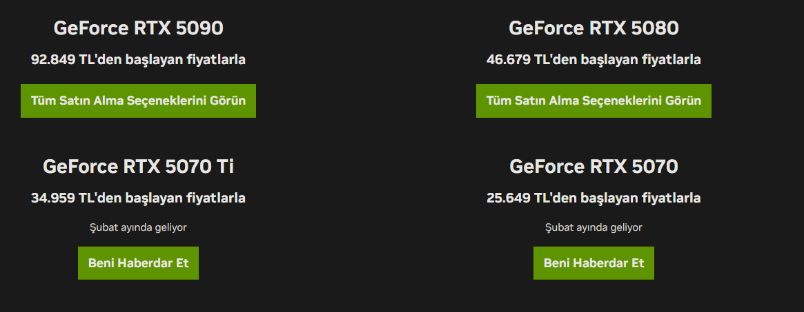 1. fotoğraf 5000 fiyatları, ve 2. fotoğraf 5000'ler ile 4060'ın karşılaştırması, 3 ve 4. fotoğraf ise 5000 ekran kartlarının oyun grafiklerine karşı etkisi, 3. fotoğraf öncesi RTX kapalı, 4. fotoğraf açık: