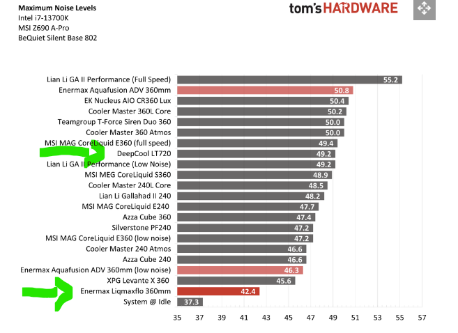 Testte DeepCool LT720 daha sesli çıkıyor. Soğutmaları aşağı-yukarı aynı. DeepCool en ucuz 4 bin TL, enermax ise en ucuz 3.200 TL. Yine de daha kötü ürünü almak istediğinize emin misiniz? Bu kadar şikayet varken ve sesli bir model olduğu halde. Linklerini de paylaştım ürünlerin.