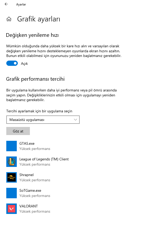 Hocam oyunlar burda gozukmuyor sebebini bilmiyorm kendim ekliyorum her oyun yukledigimde ve yuksek performans olarak seciyorum