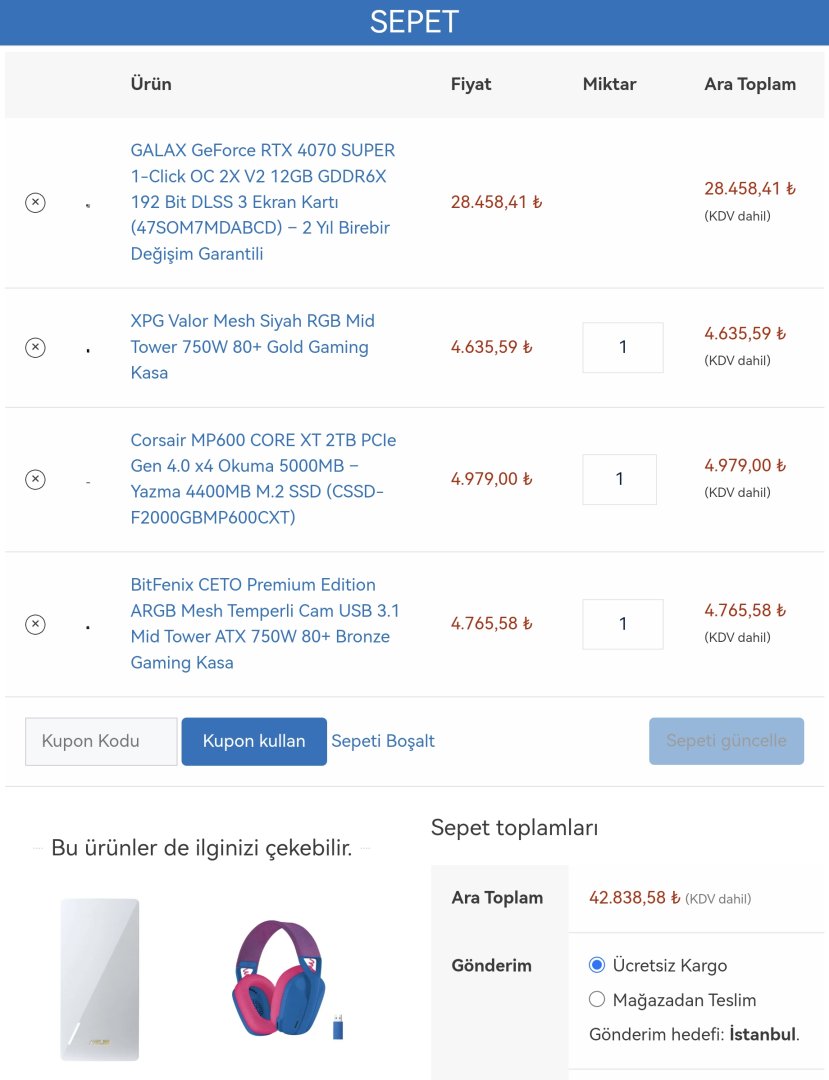 Halihazırda elimde birçok parça var. Yaza da DDR5 geçeceğim, şu anlık almam gerekenleri ekledim. Kasa konusunda iki kasadan hangisi daha mantıklı acaba?