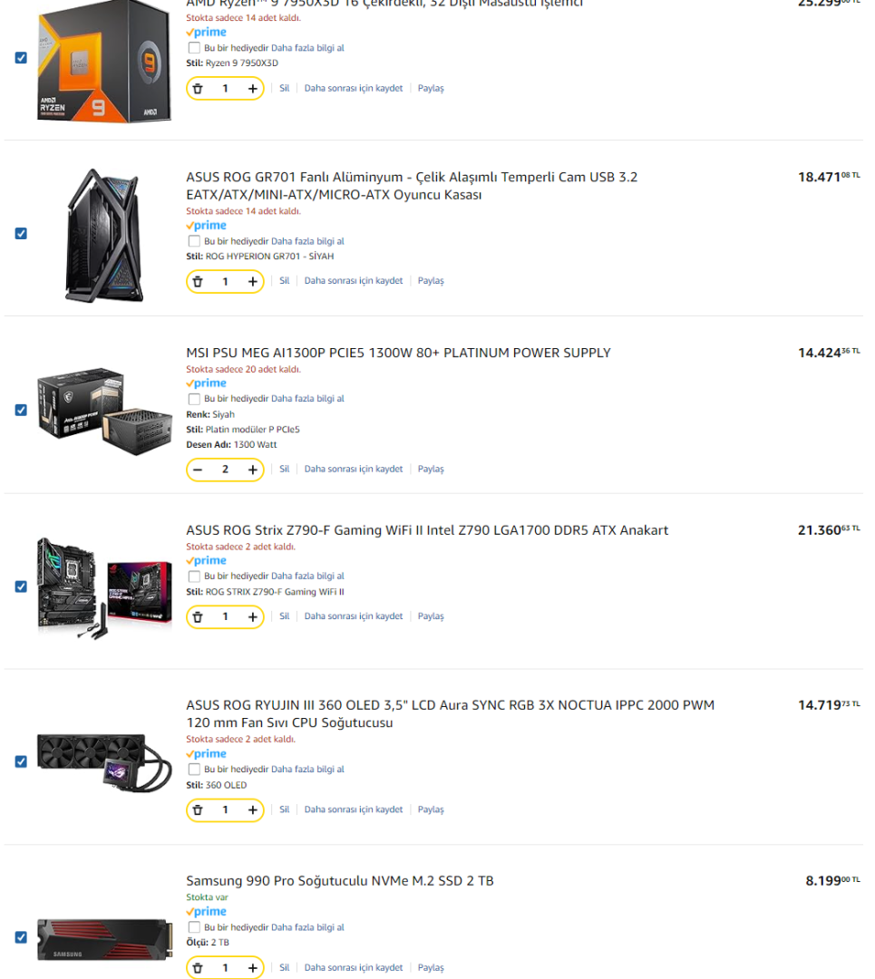 arkadaşlar önden satın alacağım parçaları yazabilecek yok mu.