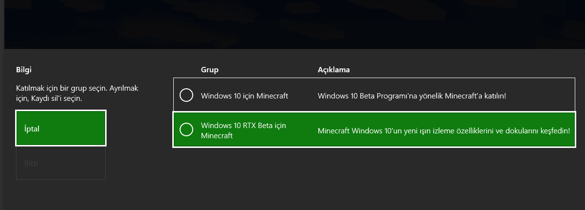 Xbox Insider programına girin,sağ taraftan Insider İçerik kısmına girip Minecraftı seçin,karşınıza bu ekran çıkacak RTX Beta seçip Bitti tuşuna basın.Oyununuz güncellenecektir.Bu arada sadece Windows 10 (Bedrock) versiyonunda geçerli.Eki Görüntüle 537825