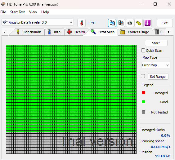HD tune tarama yapmaya başladım sonucu atacağım içerisinde 9 adet MKV formatında film var toplam 65,7 GB bilgisayara taktığımda filmleri izleyebiliyorum. Fakat silme formatlama artı bir şey eklemeye izin vermiyor. Kingston servisini bulamadım. Çöpe atmak istemiyorum gerekirse sitede anlayan birine kargo ile tamir için gönderebilirim. Çözümü bulabılırsek yaşayan arkadaşlar için referans olur.