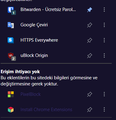 4. sıradaki uzantı reklam engelleyicidir etik olarak doğrumudur bilemem fakat güvenlik için şart olduğu kesin.
