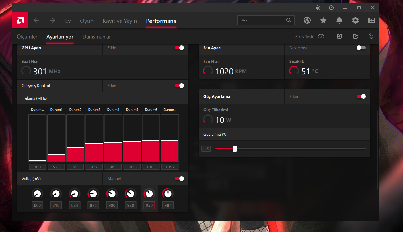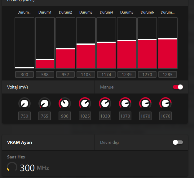 MSI Afterburner değil de direk Radeon Software'dan mı yaptınız? Radeon Software üzerinden yapmanızı öneririm bir fotoğraf paylaşın ona göre yardımcı olmaya çalışırım.