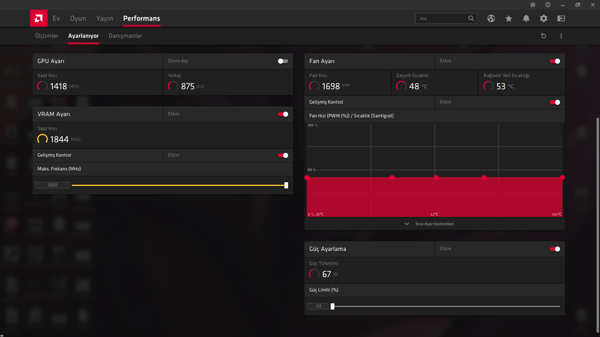 Bu ayarları kullanıyorum şu an. Normalde basitçe undervolt yapılabilir ancak sürekli oyun da oynuyorum, o yüzden yapmadım.