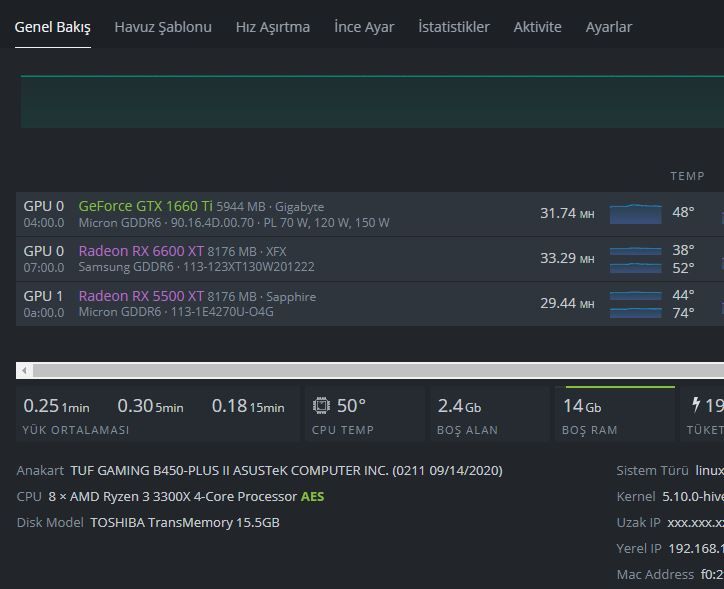 Elimde bir adet RX 5500 XT 8 GB kart bulunuyor. Mining yapmak istiyorum sizce ayarlarım ne olmalı? Bu kart 26 Mh/s ile kazabiliyor ve bunu OC ile 30 Mh/s'a çıkarmak istiyorum. Hangi minerı kullanmalıyım? Günlük depozitosuz çekim yapabileceğim yerler nedir? En kârlı coin hangisidir? Bir el atıverin...