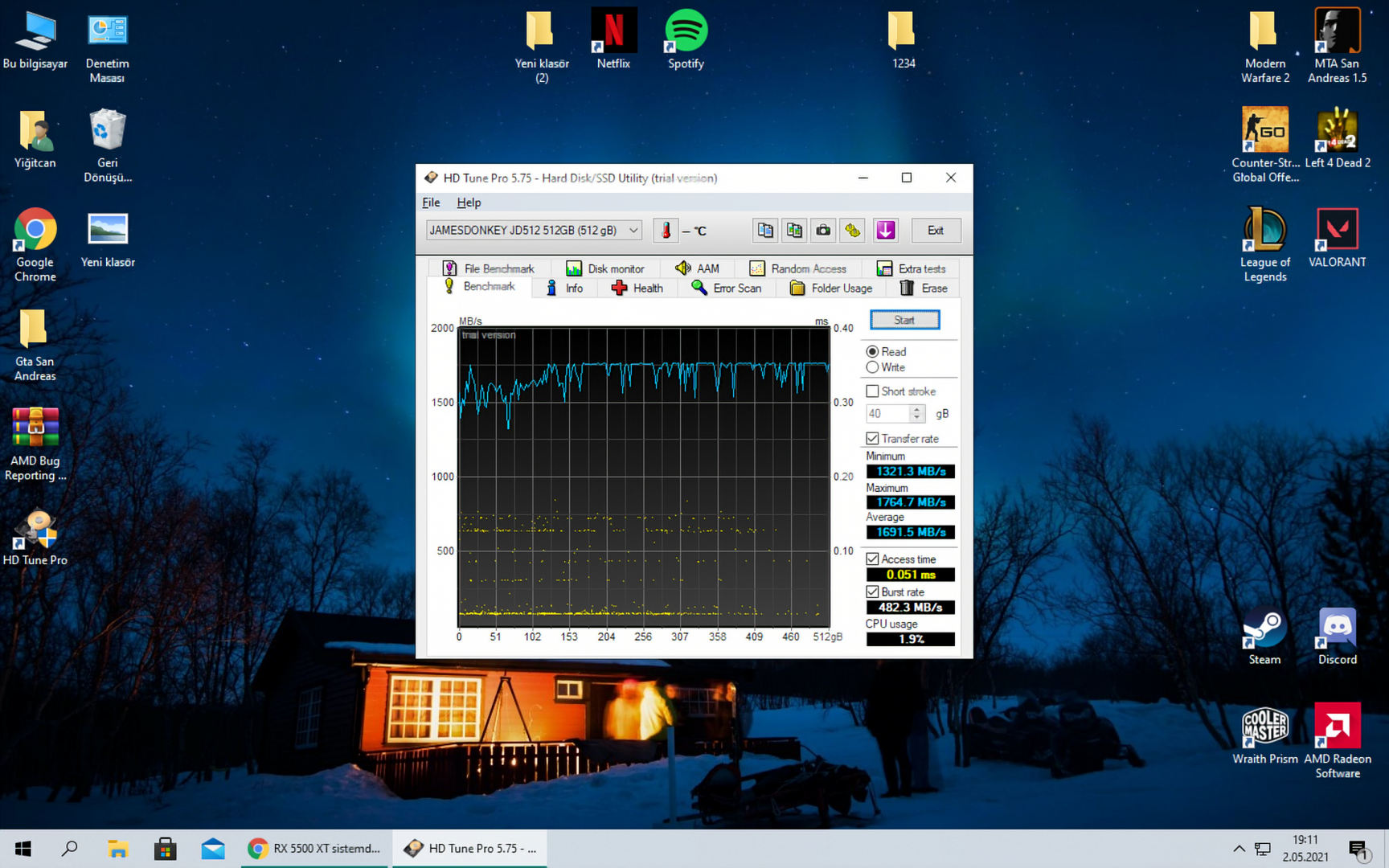HD Tune Pro: James Donkey JD512 512 GB benchmark.