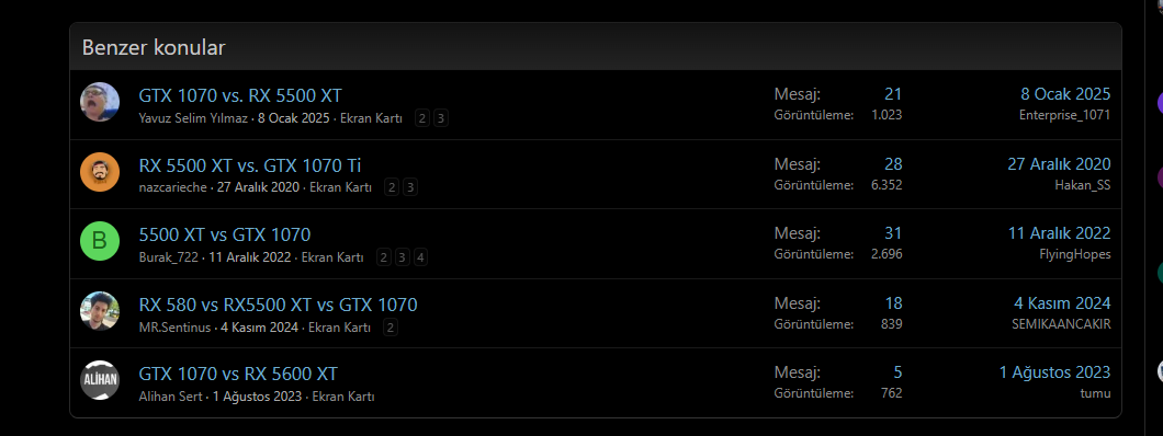 Bulabilirsen ya da bütçene uygun olursa ikinci el 6600 ortalama tercih bu setler arasında. 1070 Ti'de ciddi yaşlandı başarılı olmasına rağmen.