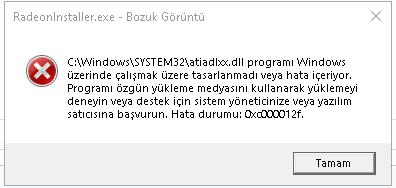 Kurulumdan sonra Radeon Software'yi yükledim ve çalışıyordu, fakat son sürümde hata aldığım için DDU ile sürücüleri kaldırdım.